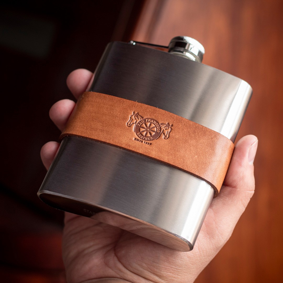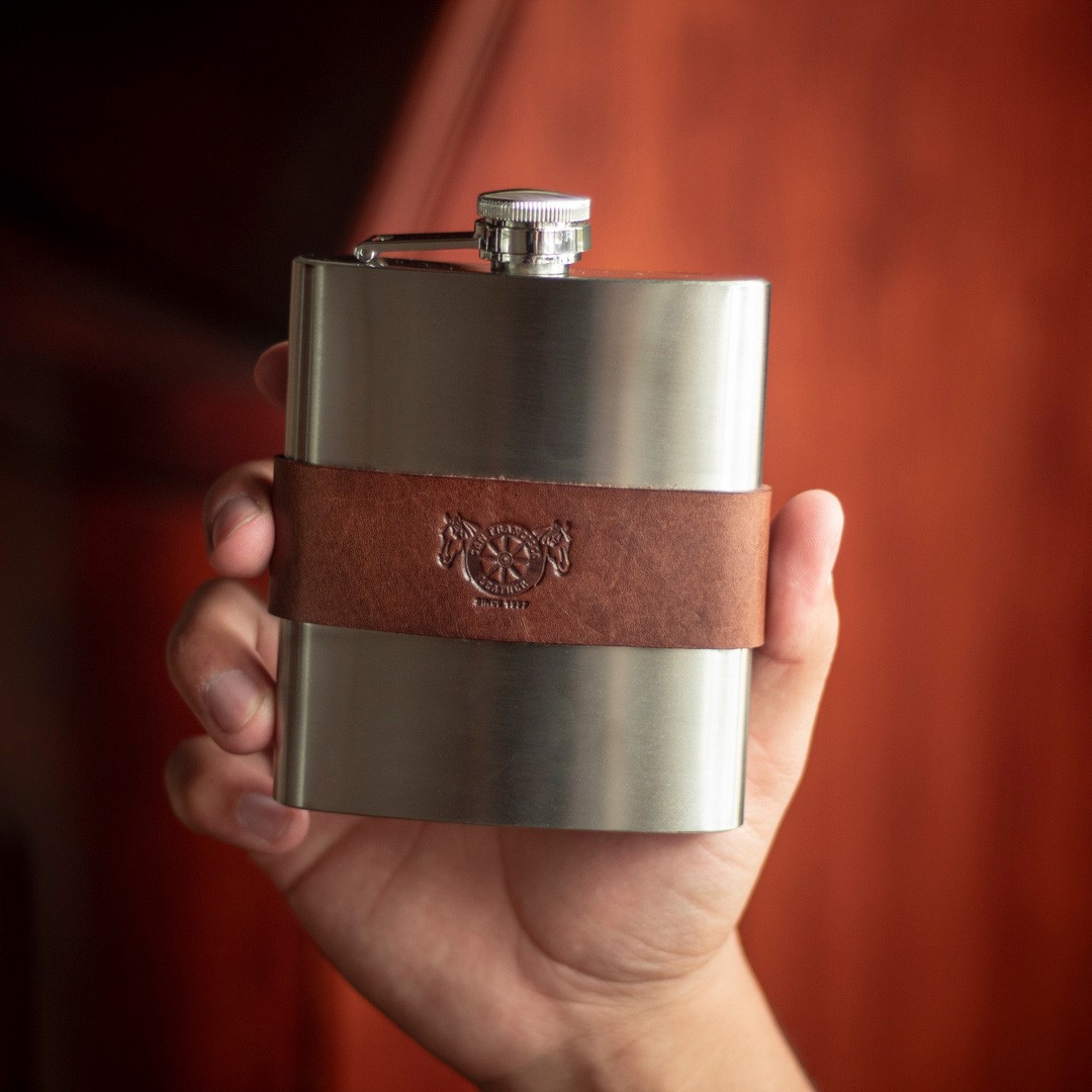 Fabricada en acero inoxidable resistente con apliques en cuero de curtido vegetal, esta caminera combina funcionalidad y carácter. Su diseño compacto y duradero la convierte en la compañera perfecta para quienes valoran los detalles artesanales y la autenticidad en cada sorbo.