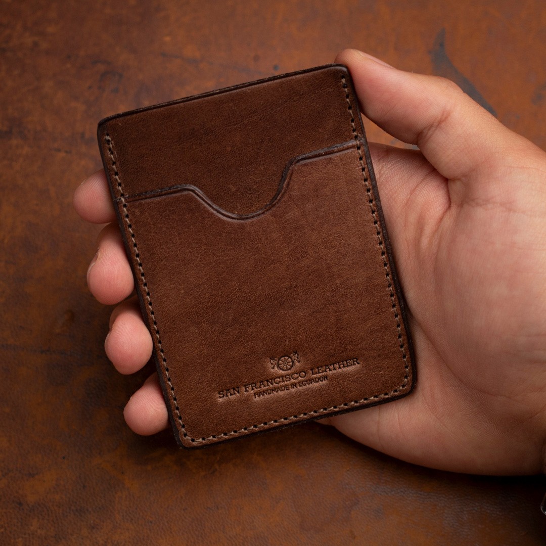 Hecho a mano con cuero de curtido vegetal, este tarjetero compacto es perfecto para lo esencial. Su diseño sobrio y su acabado rústico lo hacen ideal para quienes valoran lo auténtico.